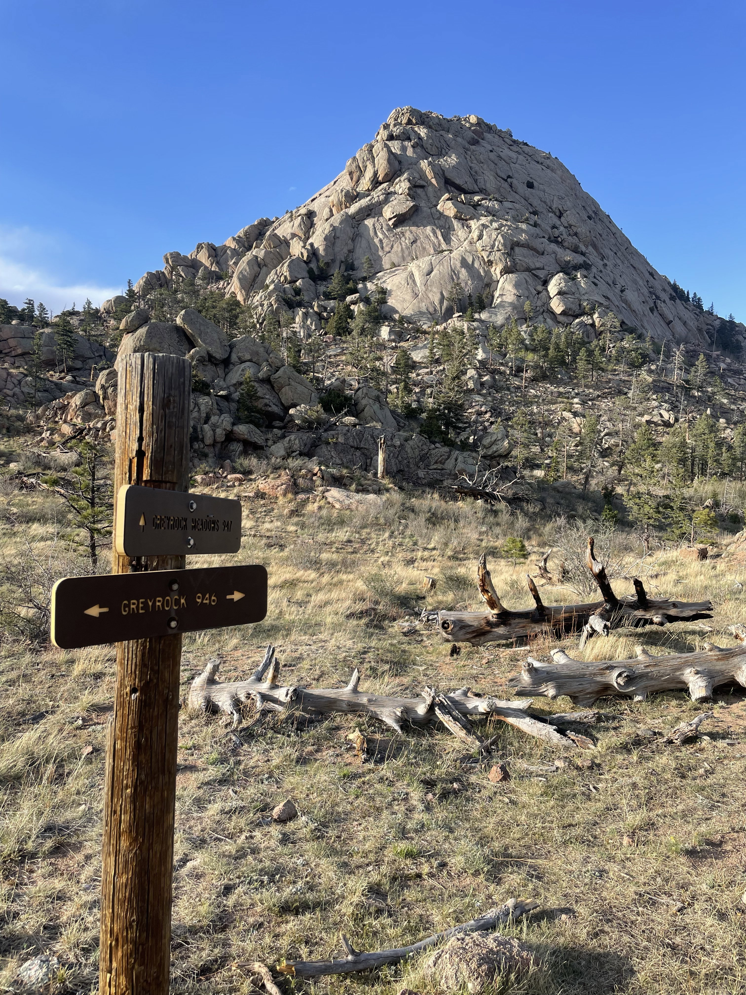 The statistics for Greyrock Mountain were a bit aggressive for an evening hike after work, but there was a great trail most of the way to the summit, so I decided to go for it. The trail and peak didn't disappoint and I reached the summit after 1 hour and 35 minutes. I only spent 5 minutes on top since time was short, but I still enjoyed the hike and scramble to the peak. I trail jogged on sections I was able to on the descent and made it back to the trailhead in 55 minutes. This was a great hike to a unique summit not far from Fort Collins, Colorado.