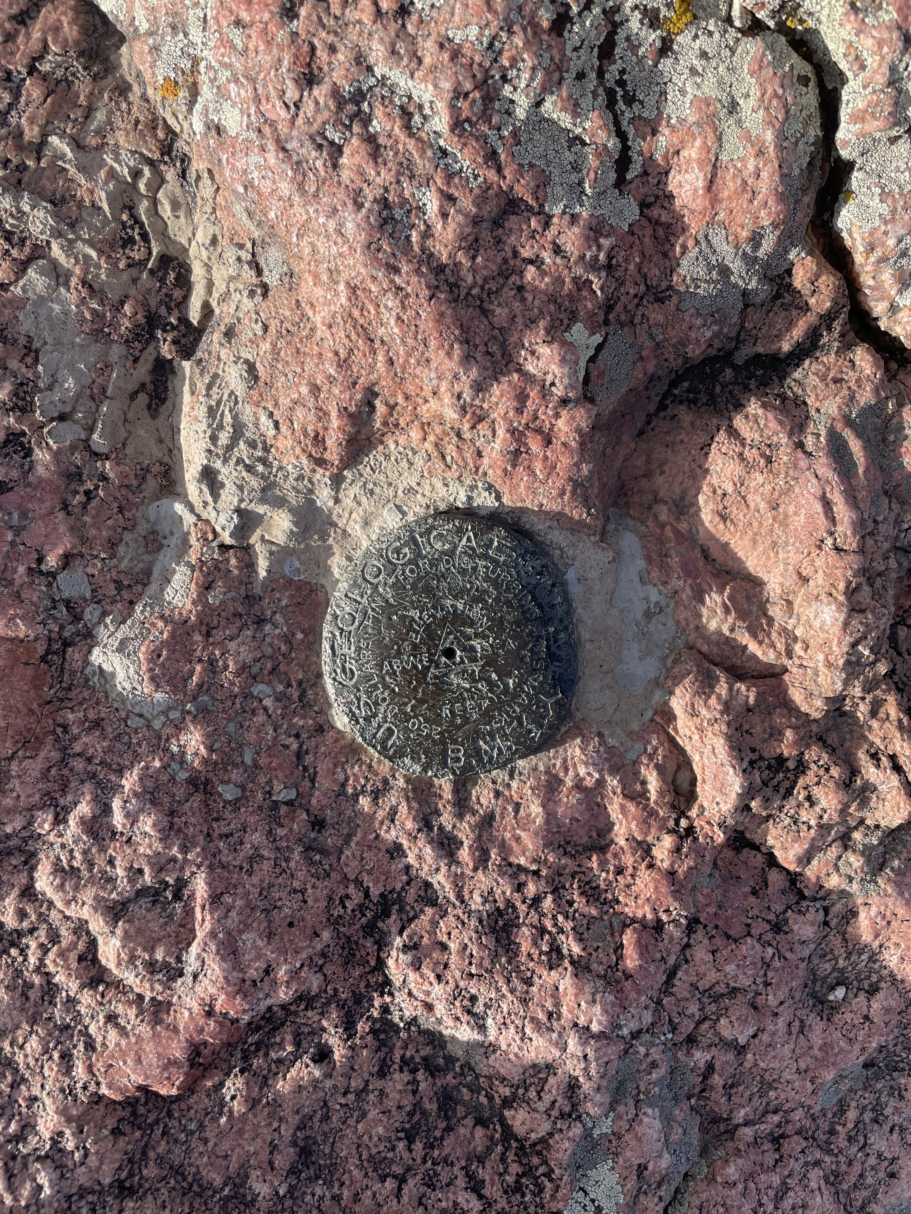 Summit marker on south summit block.