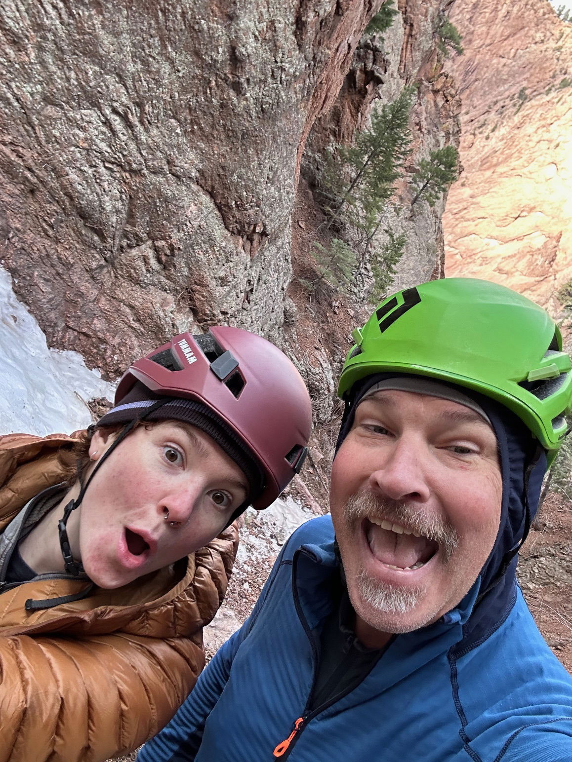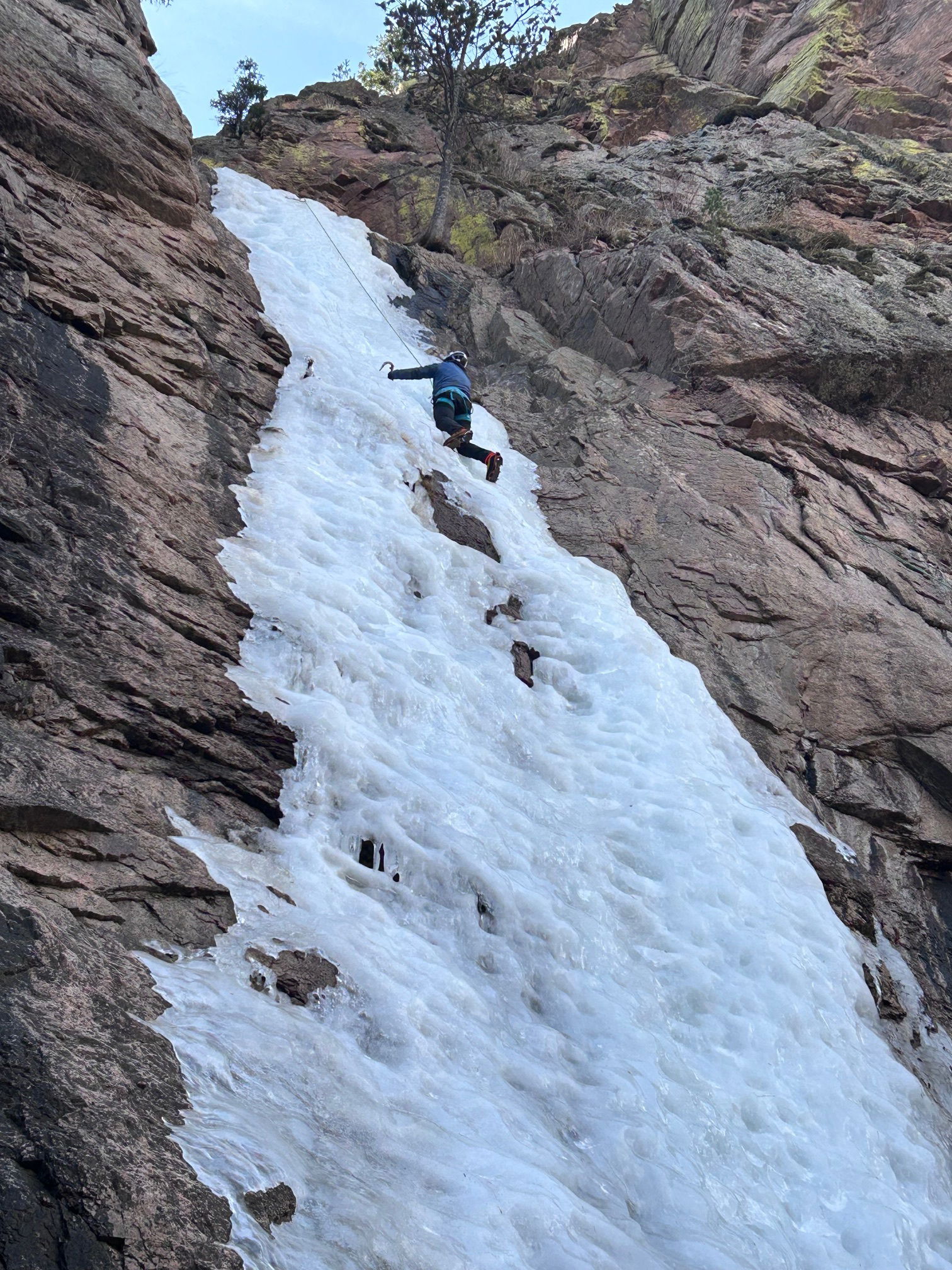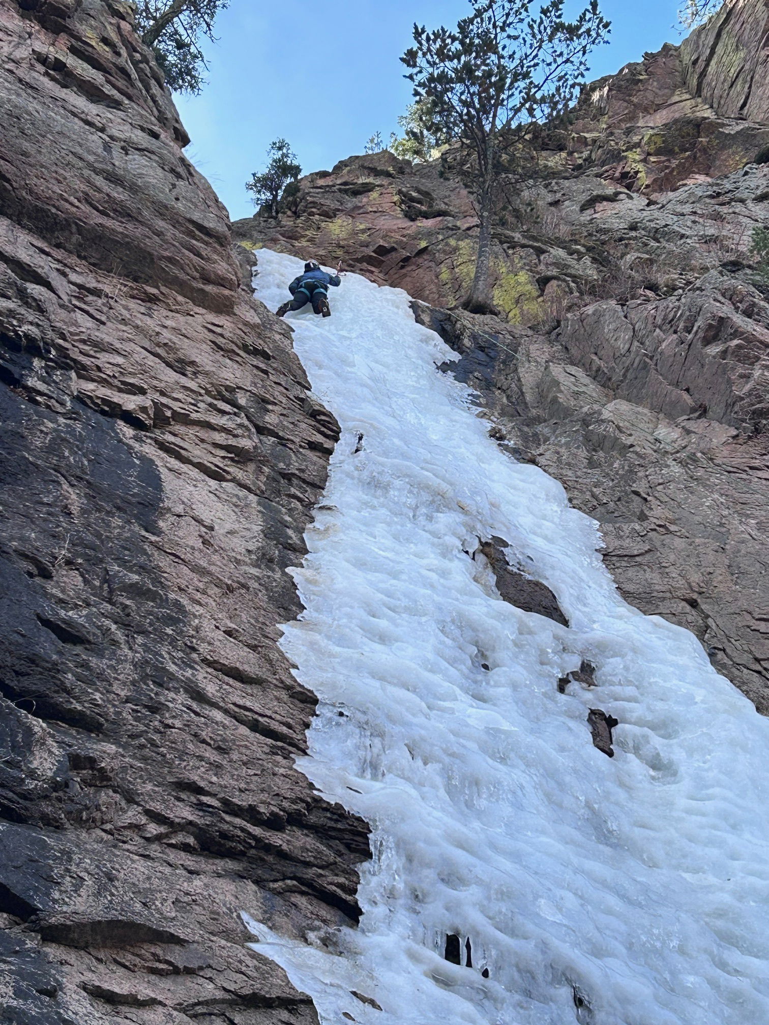 With this trip, we may have gotten one of the last days of climbing at Hully Gully this season unless the temperature drops consistently for an extended period of time. The ice was fun to climb with plastic or styrofoam swings and kicks, but it did seem a bit hollow and detached. Nick free-soloed the the pitch and set up a top rope for the rest of us to enjoy. We all got several laps in over the morning as we were the only party at Hully Gully.