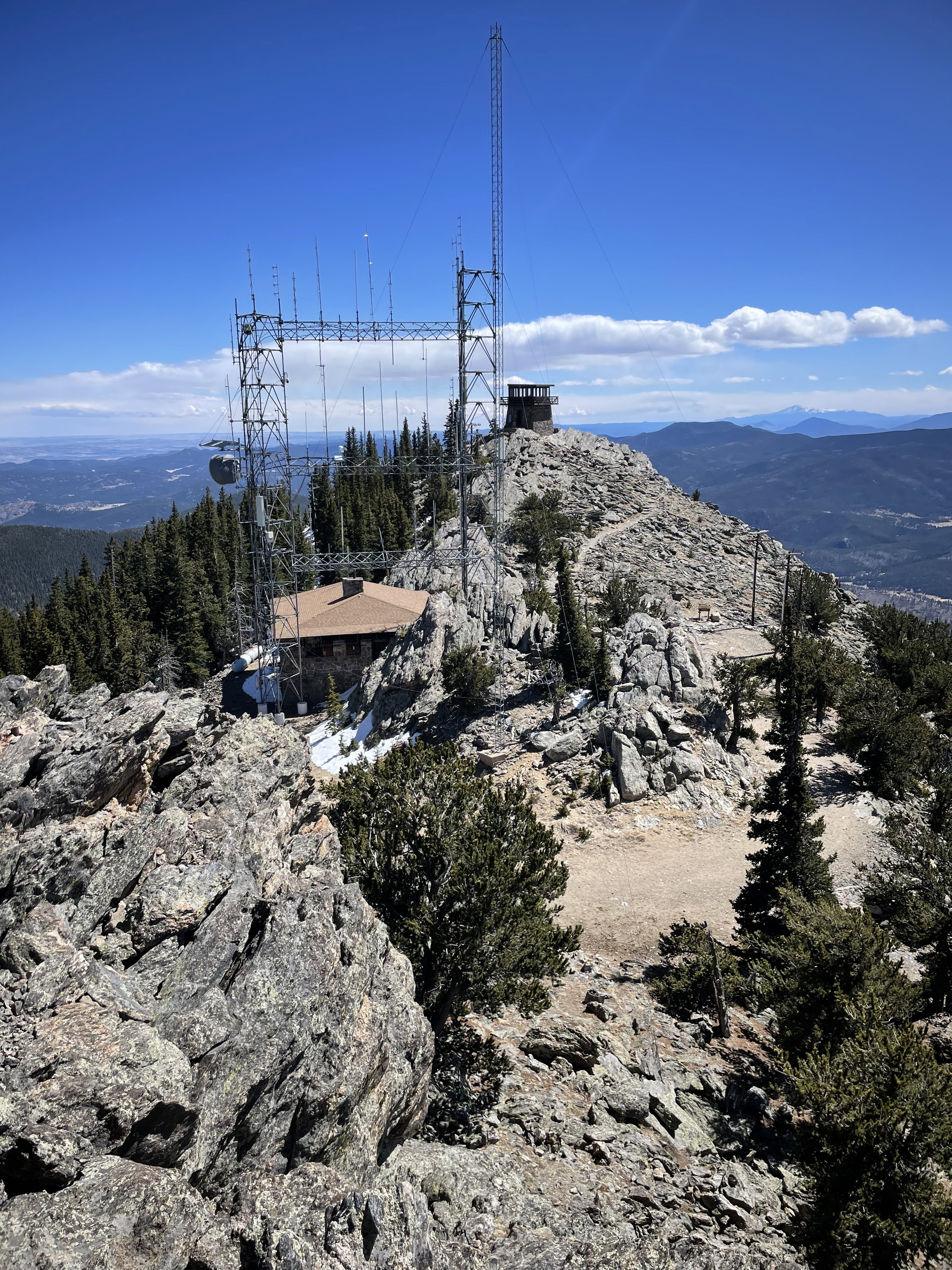 The lookout tower from the summit of Squaw Mountain.